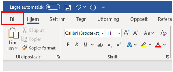 - I dokumentet ditt, klikk «Fil» øverst i venstre hjørne