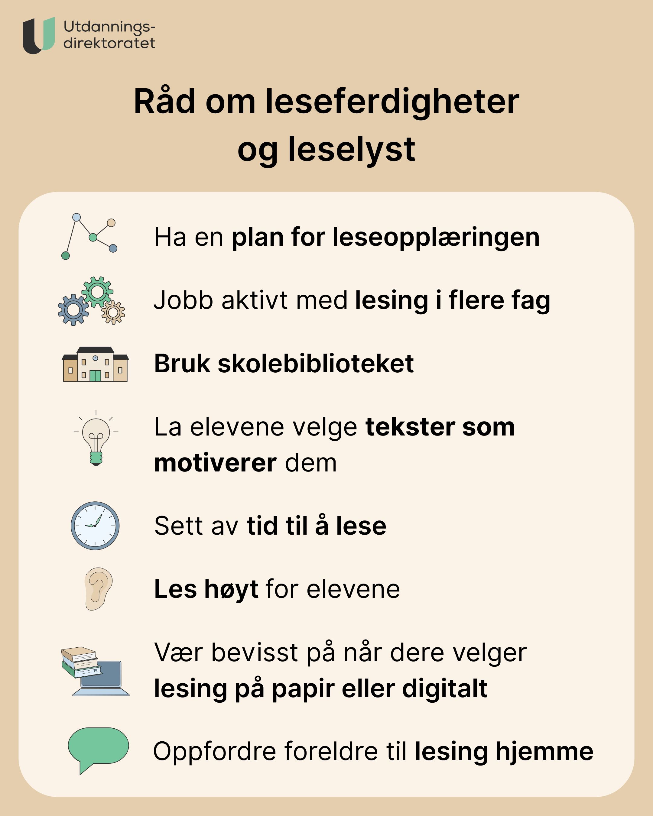 I tillegg til å utvikle elevenes leseferdigheter, spiller skolen og lærere en viktig rolle for å motivere og inspirere elevene.