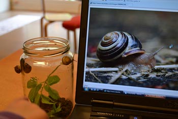 Barna lærer at snegler kan møte hverandre og ta kontakt med hverandre med tentaklene.