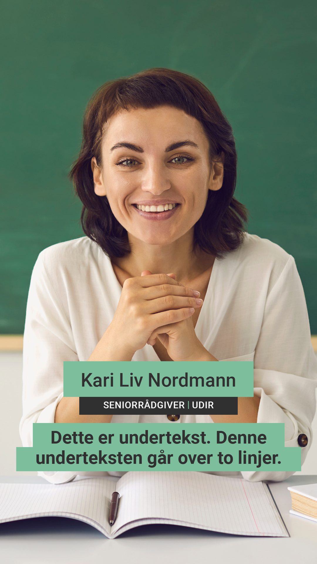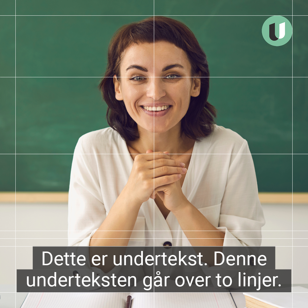 - I formater for sosiale medier (1:1, 4:5 og 9:16) skal tekstingen midtstilles.