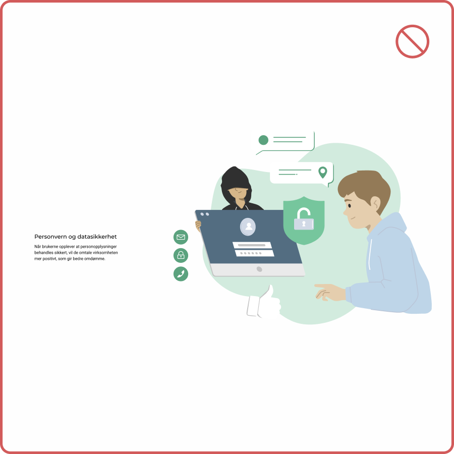 Ved behov for å illustrere noe sårbart, skal illustrasjoner brukes framfor foto av hensyn til personvern. I andre situasjoner velger vi mellom illustrasjoner og foto avhengig av hva som fungerer best i konteksten.
