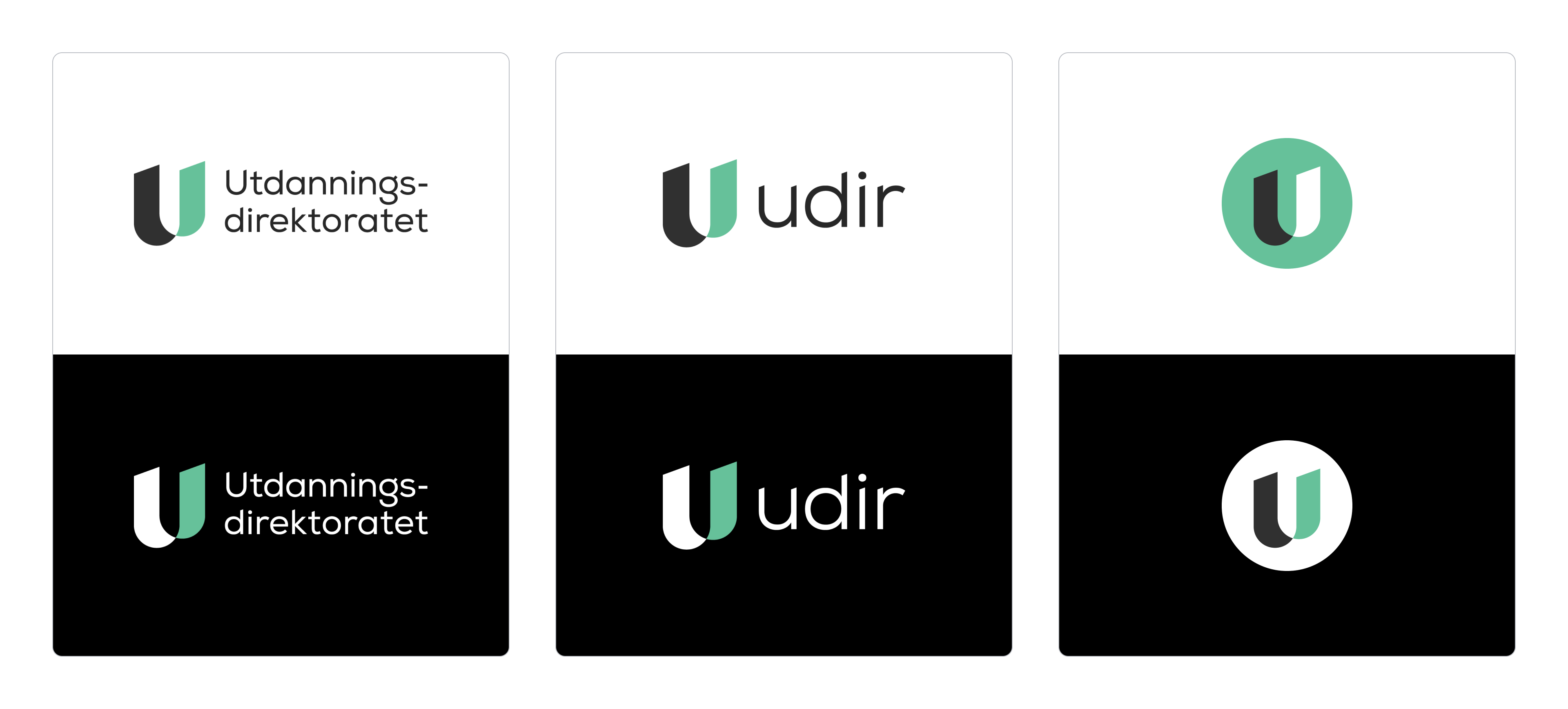 Udir har ulike varianter av logo og logosymbol. Alle variantene kan brukes på sort eller hvit bakgrunn.