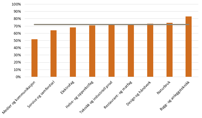 Blant utdanningsprogrammene har flest søkere i bygg- og anleggsteknikk fått godkjent lærekontrakt ved utgangen av året. Lavest andel har fått læreplass i medier og kommunikasjon og service og samferdsel.